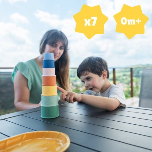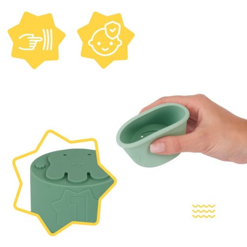 Stohovatelné silikonové kalíšky pro rozvoj kreativity a motorických dovedností děťátka.