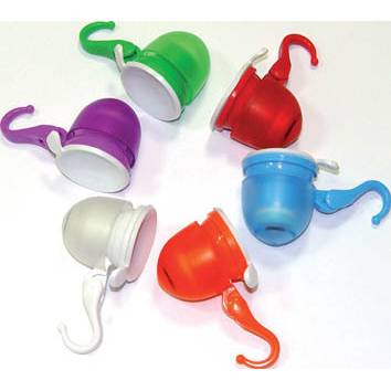 Silikonový háček červené barvy s jednoduchým uchycením a nosností až 3 kilogramy.