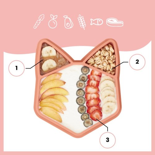 • 3 přihrádky (1 větší + 2 malé) napomáhají děťátku učit se rozeznávat chuti a nemíchat jídlo