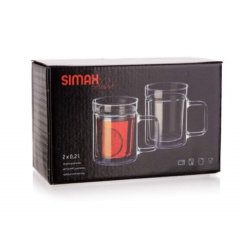 Sada dvoustěnných hrnků TWIN 0,2 l, 2 ks se vyrábí z tvrdého boritokřemičitého skla, které je velmi odolné (mechanicky i teplotně +300 / -40 stupňů). Výhodou je dlouhá životnost, hygienická nezávadnost a snadná údržba (lze mýt v myčce na nádobí).