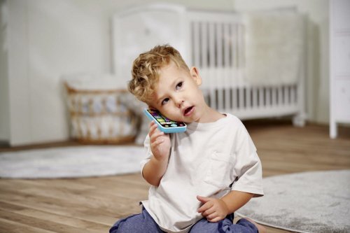 Mobilní telefon pro nejmenší se světelným a zvukovým efektem - melodie, hlasy zvířátek a další zvuky. Výška telefonu 13,5 cm.