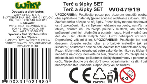 Šipky set 4 šipky. Průměr terče 30 cm. Obsah balení - terč, 2x modrá šipka, 2x červená šipka.