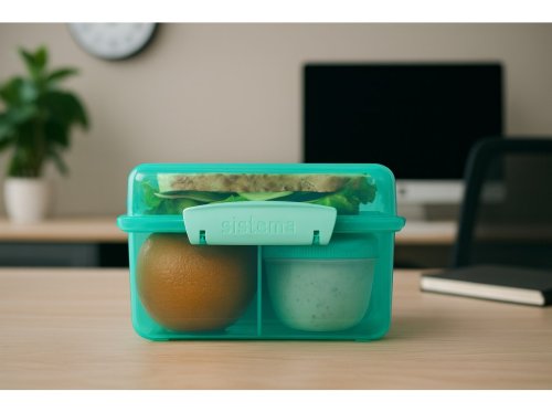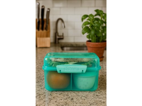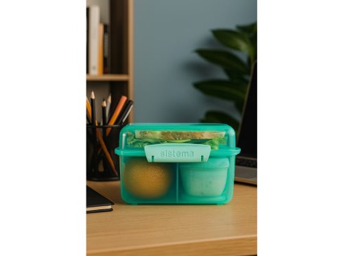 Díky inovativnímu designu s třemi komorami, odnímatelnými tácky a 150ml kelímkem na jogurt, tato krabička umožňuje udržet jídlo oddělené a čerstvé až do doby konzumace.
