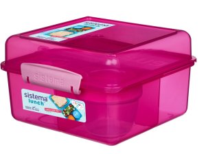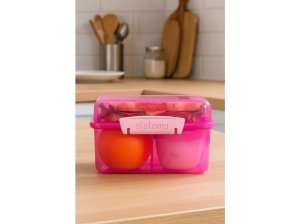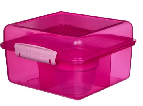 Sistema Dělený svačinový box Lunch Cube Max s nádobou na jogurt s dvojitým víčkem 2 l, růžová