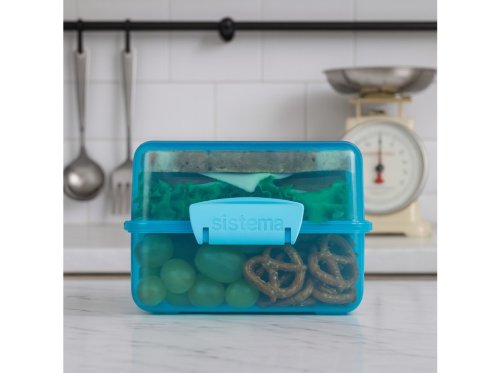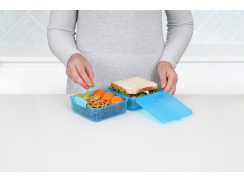 Krabička se skládá ze dvou pater, která nabízí dostatek prostoru pro pestrý a vyvážený oběd. Velká přihrádka je ideální pro uložení sendviče, zatímco menší přihrádky se skvěle hodí na ovoce, zeleninu, ořechy nebo jiné drobné pochutiny.