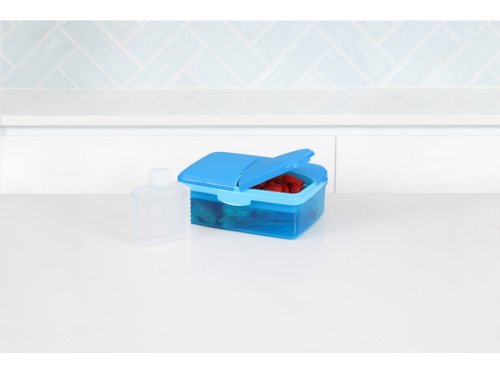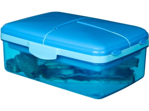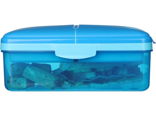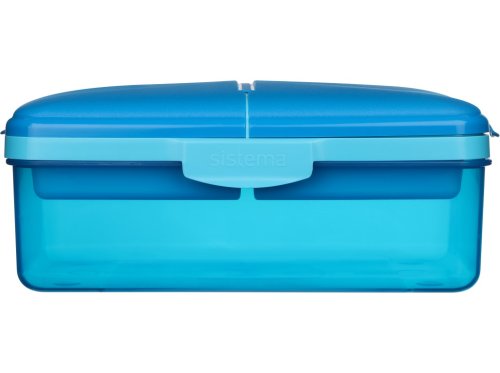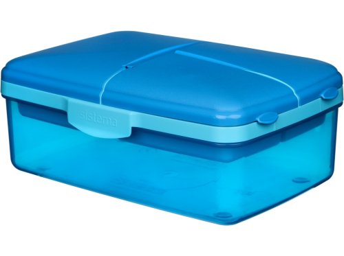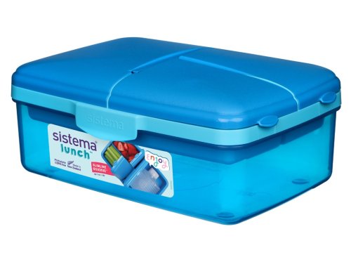Sistema Dělený svačinový box Lunch Quaddie 1,5 l se 3 výklopnými přihrádkami ve víku a s lahví na pití, modrá
