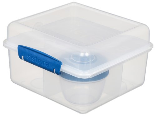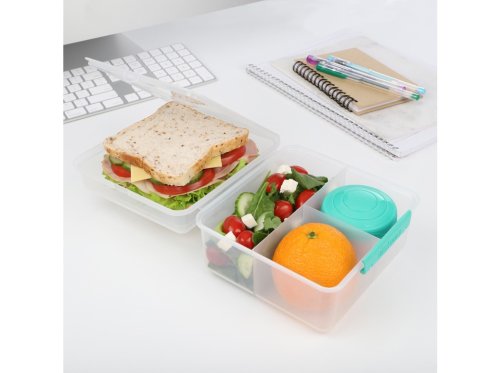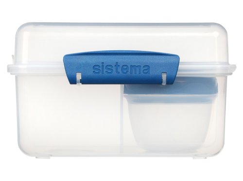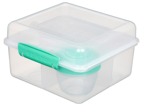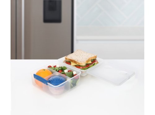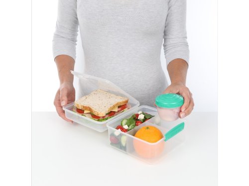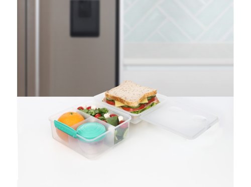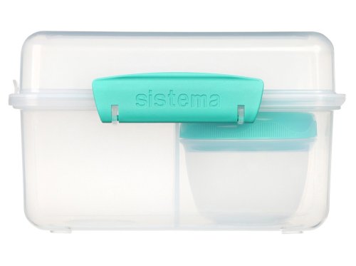 Krabička je rozdělena do tří komor, které vám umožní oddělit různé druhy potravin a zabránit jejich smíchání. Můžete si tak vzít s sebou například sendvič, salát a ovoce v jednom. Součástí krabičky je 150ml nádoba na jogurt s těsnícím šroubovacím víčkem, která je ideální pro uložení jogurtu, müsli, pudinku nebo jiných tekutých potravin.