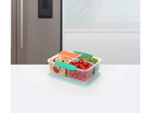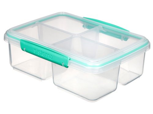 Krabička je rozdělena do čtyř přihrádek, které vám umožní oddělit různé druhy potravin a zabránit jejich smíchání. Můžete si tak vzít s sebou například salát, ovoce, ořechy a sušenky v jedné krabičce. Tato krabička vám pomůže omezit používání plastových sáčků a potravinových fólií a zároveň vám zajistí, že vaše jídlo bude čerstvé a chutné. Vhodné pro mytí v myčce nádobí v horním koši.