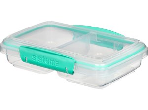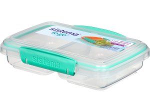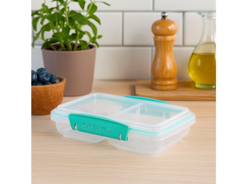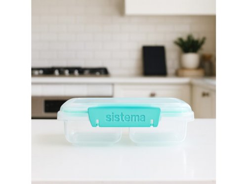 Krabička je rozdělena do dvou oddílů, takže si můžete vzít s sebou dva druhy jídla bez rizika, že se smíchají. Tato krabička vám pomůže omezit používání plastových sáčků a potravinových fólií a zároveň vám zajistí, že vaše jídlo bude čerstvé a chutné. Výhody: • Dva oddíly • Snadné uzamykání: Klip Sistema® a pružné těsnění • Modulární design