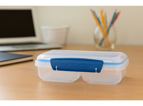 Krabička je rozdělena do dvou oddílů, takže si můžete vzít s sebou dva druhy jídla bez rizika, že se smíchají. Tato krabička vám pomůže omezit používání plastových sáčků a potravinových fólií a zároveň vám zajistí, že vaše jídlo bude čerstvé a chutné. Výhody: • Dva oddíly • Snadné uzamykání: Klip Sistema® a pružné těsnění • Modulární design