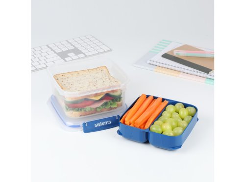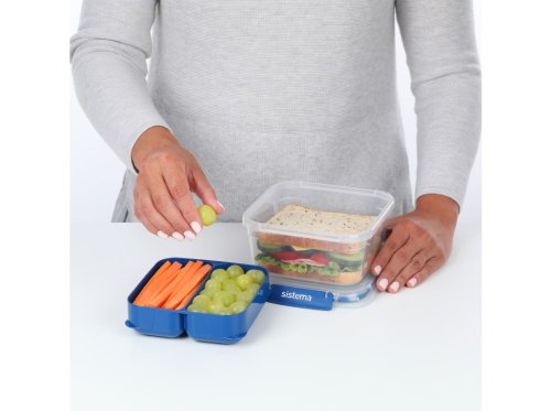 Sistema® 1,15 l TO GO™ STAX je skvělou volbou pro všechny, kteří hledají praktický a stylový způsob, jak bezpečně přenášet jídlo do práce, školy i na cesty. Odnímatelný zásobník umožňuje oddělenní různých druhů potravin, takže si můžete vychutnat čerstvou a chutnou svačinu kdykoli a kdekoli. Stohovatelný tvar zajišťuje maximální využití prostoru ve spíži, chladničce a mrazničce. Snadno uzavíratelné klipy Sistema® a pružné těsnění udržují potraviny déle čerstvé. Vhodné pro mytí v myčce nádobí v horním koši.