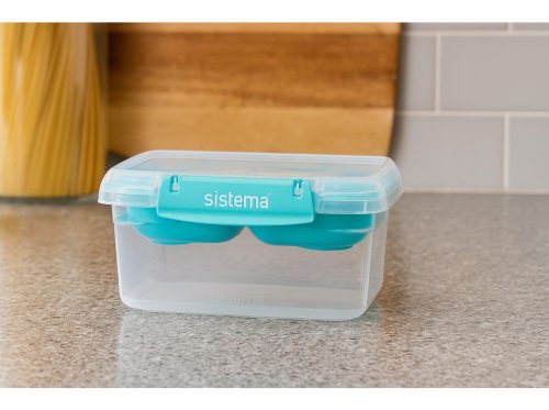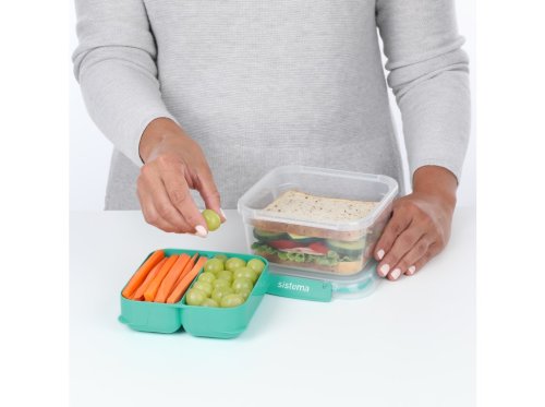 Sistema® 1,15 l TO GO™ STAX je skvělou volbou pro všechny, kteří hledají praktický a stylový způsob, jak bezpečně přenášet jídlo do práce, školy i na cesty. Odnímatelný zásobník umožňuje oddělenní různých druhů potravin, takže si můžete vychutnat čerstvou a chutnou svačinu kdykoli a kdekoli. Stohovatelný tvar zajišťuje maximální využití prostoru ve spíži, chladničce a mrazničce. Snadno uzavíratelné klipy Sistema® a pružné těsnění udržují potraviny déle čerstvé. Vhodné pro mytí v myčce nádobí v horním koši.