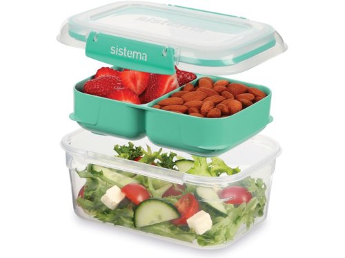 Sistema 1 l TO GO STAX je skvělou volbou pro všechny, kteří hledají praktický a stylový způsob, jak bezpečně přenášet jídlo do práce, školy i na cesty. Odnímatelný zásobník umožňuje oddělenní různých druhů potravin, takže si můžete vychutnat čerstvou a chutnou svačinu kdykoli a kdekoli. Stohovatelný tvar zajišťuje maximální využití prostoru ve spíži, chladničce a mrazničce. Snadno uzavíratelné klipy Sistema® a pružné těsnění udržují potraviny déle čerstvé.