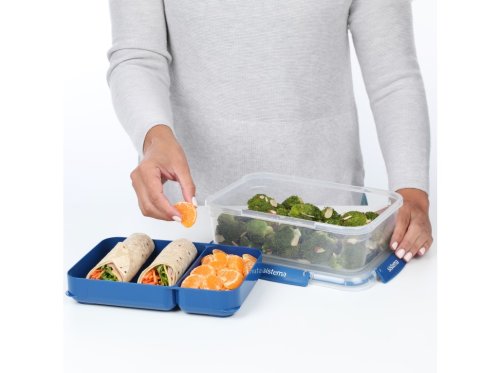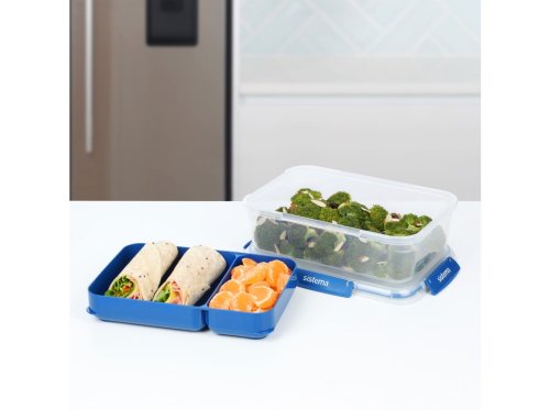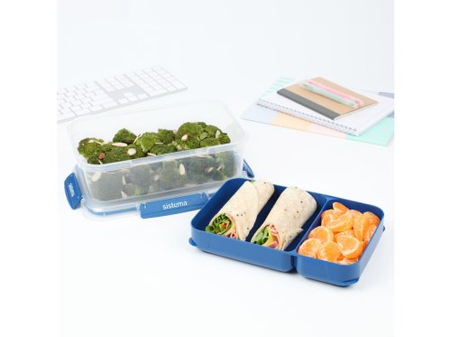 Sistema 2,2 l TO GO STAX je skvělou volbou pro všechny, kteří hledají praktický a stylový způsob, jak bezpečně přenášet jídlo do práce, školy i na cesty. Odnímatelný zásobník umožňuje oddělenní různých druhů potravin, takže si můžete vychutnat čerstvou a chutnou svačinu kdykoli a kdekoli. Stohovatelný tvar zajišťuje maximální využití prostoru ve spíži, chladničce a mrazničce. Snadno uzavíratelné klipy Sistema® a pružné těsnění udržují potraviny déle čerstvé.