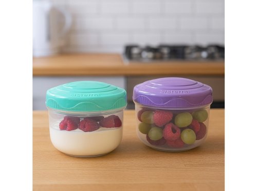 Praktické kelímky Sistema o objemu 150 ml, dodávané v sadě po dvou kusech, jsou perfektní pro bezpečné přenášení menších porcí ovoce, salátu, omáčky či jiných dobrot. Kelímky jsou vhodným doplňkem klasických svačinových boxů.