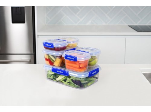 Perfektní volbou pro všechny, kteří si chtějí uspořádat svoji kuchyň. Modulární design umožňuje efektivní stohování a šetří tak cenný prostor. Díky vestavěnému těsnění proti úniku udrží potraviny déle čerstvé a zabrání vylití tekutin. Krabičky lze použít i na přenášení svačin a obědů. Vhodné pro mytí v myčce nádobí v horním koši.