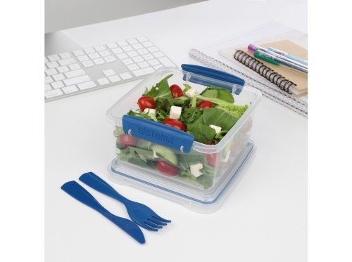 Sistema Krabička na oběd s příborem 1,2 l je ideální pro přepravu oběda a svačiny do práce, do školy nebo do parku a zároveň pomáhá omezit používání plastových sáčků. Integrovaný nůž a vidlička se připínají k víku, aby nebylo nutné nosit s sebou samostatné příbory.