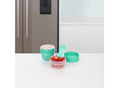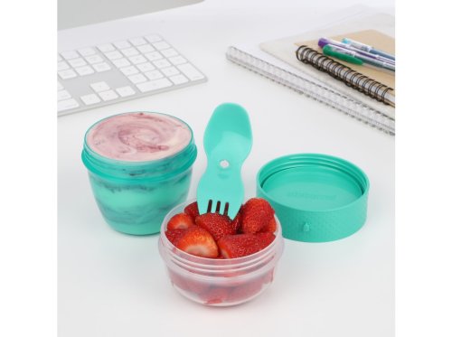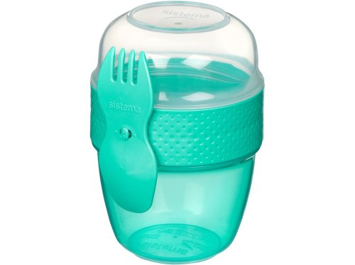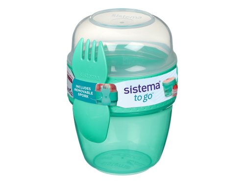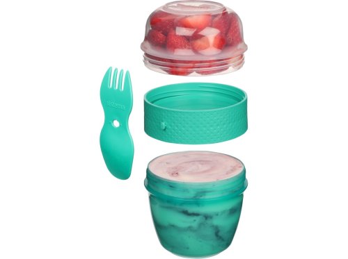 Sistema® 515 ml TO GO™ Snack Capsule se 2 přihrádkami a vidličkou/lžičkou je chytrý a praktický pomocník pro všechny, kteří si chtějí vzít zdravou a chutnou svačinku nejen na cesty. Praktický tvar pohárku umožňuje ukládat odděleně různé druhy potravin a promíchat je těsně před konzumací. Ve spodní části můžete uložit třeba jogurt, v horní jakoukoliv vhodnou přísadu (müsli, ovoce, sušené plody nebo cereálie). Díky přiložené vidličce/lžičce můžete svoje oblíbené pochoutky konzumovat kdekoliv. Stohovatelný tvar zajišťuje maximální využití prostoru ve spíži, chladničce a mrazničce.