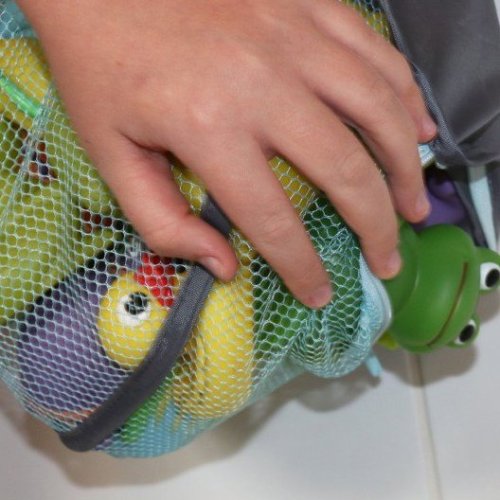 • ve spodní části je zipový uzávěr, po jehož otevření je možné všechny hračky vysypat přímo do vany