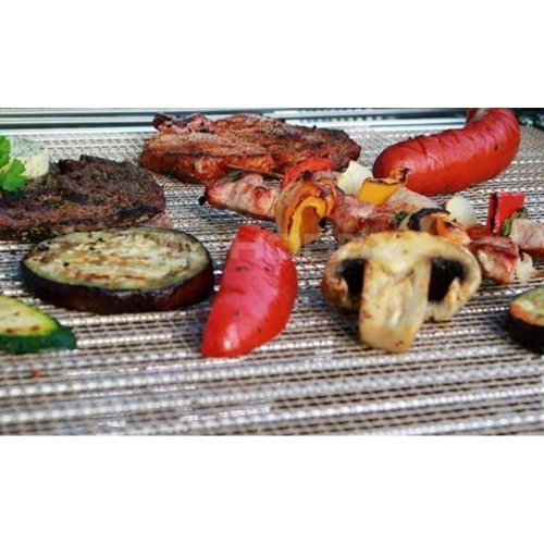 Grilovací síťka s nepřilnavým povrchem je ideální pro menší kousky masa, hub, zeleniny a další pochoutky. Zabraňuje připalování grilovaných pokrmů ke všem typům roštů a propadávání drobných kusů pokrmů roštem. Opakovaně použitelná. Výrazně usnadňuje čištění roštu. Snadná možnost úpravy na potřebný tvar či velikost. Síťku je možné použít na gril i do trouby.