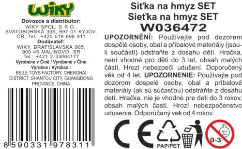 Síťka na hmyz set. Velikost síťky 41 cm. Obsah balení - síťka, 6 krabička na hmyz, lupa, pinzeta.