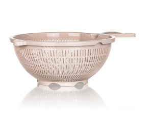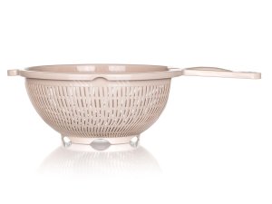 Plastové sítko CULINARIA je praktický pomocník k cezení pokrmů. Průměr sítka je 23 cm, délka s rukojetí je 38 cm. Sítko je dodáváno v barvě latte.