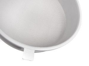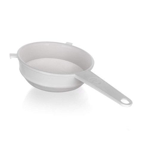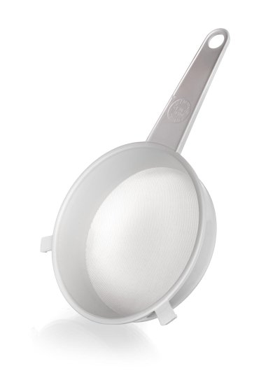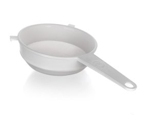 Plastové sítko PRAKTIS v bílé barvě, je vhodným pomocníkem k cezení pokrmů nebo těstovin.