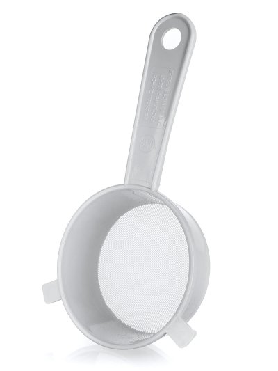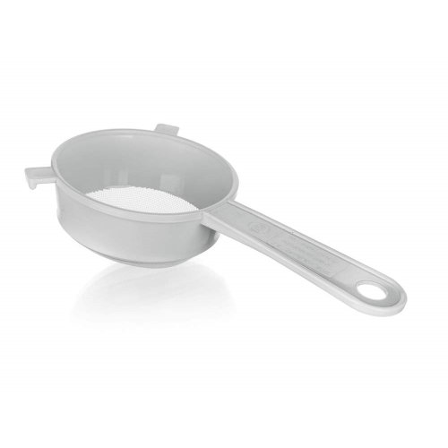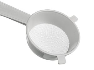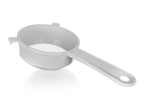 Plastové sítko PRAKTIS v bílé barvě, je vhodným pomocníkem k cezení pokrmů nebo těstovin.
