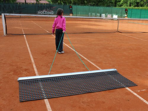 Síťovačka Extra dvojitá s hliníkovou lištou je vhodná na údržbu antukových dvorců. Tento model síťovačky je tažen pomocí šňůry, tím se antuka rovnoměrně rozhrne po celé ploše dvorce. Síť má rozměry 200 x 80 cm. Je přidělaná k hliníkovému profilu s výztuhou o hmotnosti 2,5 kg. Šířka záběru: 2,00 m Délka 80 cm Síťovina: EXTRA Hloubka: 80 cm Hliníkový profil s výztuhou: 2,5 kg