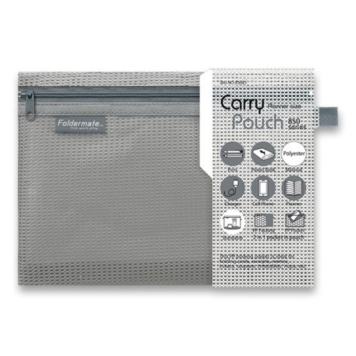 Síťovaná plastová obálka Foldermate Pop Gear pro ukládání dokumentů. Uzavíratelná umělohmotným zipem. Vnější materiál odolná tetoronová síťovina, vnitřní podšívka z voděodpudivého materiálu udrží věci suché. Rozšiřitelná spodní základna zvyšuje kapacitu. Postranní poutko pro uchycení. Formát A5.