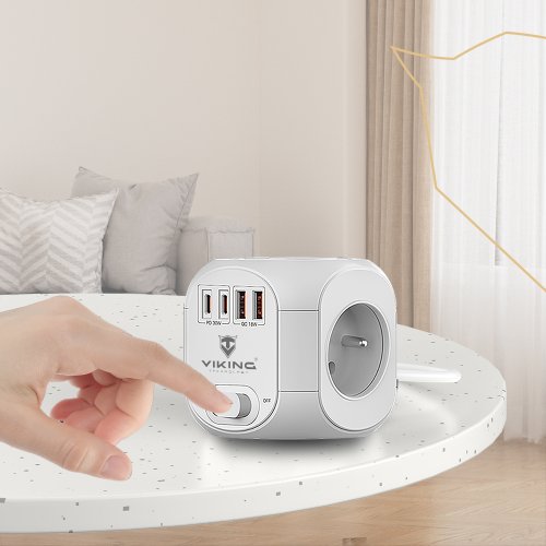 Viking AC CUBE PD30 je praktickým řešením pro každé prostředí – ať už v kanceláři, kde pomůže udržet pořádek na pracovním stole, v obývacím pokoji pro organizované a pohodlné napájení, v dětském pokoji pro bezpečné nabíjení elektroniky, nebo v kuchyni pro snadné připojení vašich spotřebičů.