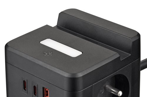 Síťový adaptér • rozbočovač • zásuvka • držák mobilního telefonu • 2 x AC (230V) výstup • 1 x USB-A (5V/3A, 9V/2A, 12V/1,5A) • 2 x USB-C (5V/3A, 9V/2,22A, 12V/1,67A) • dotykové světlo se třemi intenzitami svícení • kompaktní rozměry a design • kabel 1,4 m • možnost nabíjení až 5 zařízení současně