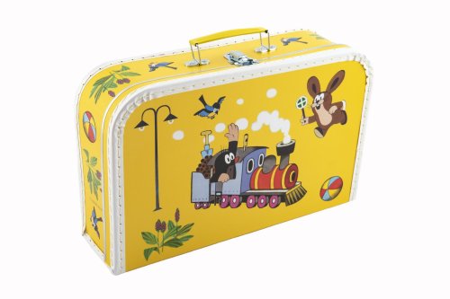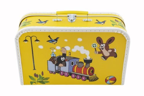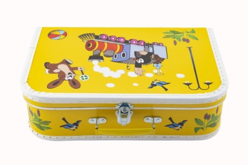 Šitý kufřík ve žluté barvě s motivem Krtka a Mašinky je vhodný například na uschávání hraček.Velikost 35x22x1O cm.
