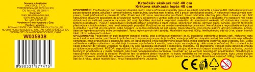 Skákací míč Krtek. Velikost 40 cm. Součástí nožní pumpa. Maximální nosnost 50 kg.