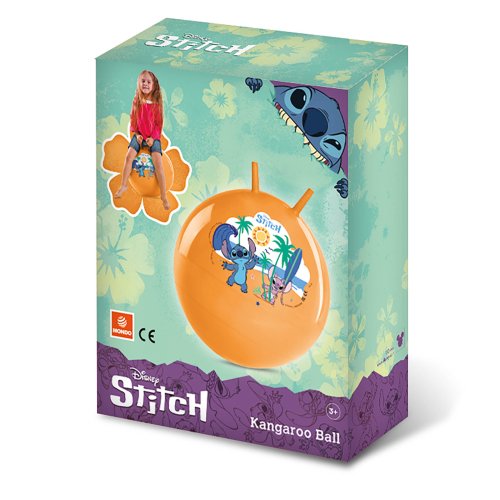 Skákací míč o průměru 45 - 50 cm s motivem STITCH. Skákací míč je určený pro zábavu, sport i posilování svalstva Vašich dětí. Dva gumové úchyty umožňují snadnou a bezpečnou kontrolu nad míčem. Pohyb na míči rozvíjí koordinaci pohybů a přispívá ke zdravému vývoji, bez nadměrné zátěže na pohybový aparát. Maximální hmotnost uživatele 50 kg.