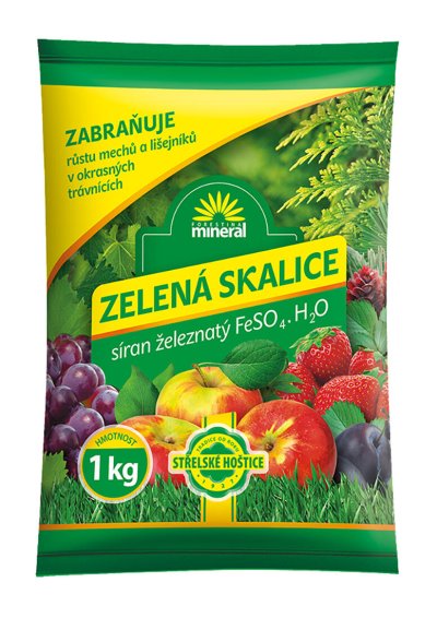 Skalice zelená - síran železnatý - odstraňuje příčiny akutního nedostatku železa v rostlinách /chloróza/.