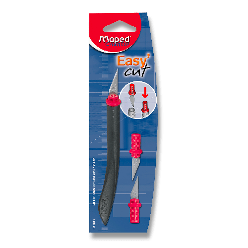 Řezací skalpel Maped Easy Cut je vsazený v ergonomické rukojeti. Bezpečný. Pro přesné a jemné řezání, vhodný pro modeláře. Dodáváno včetně 2 ks náhradních nožů.