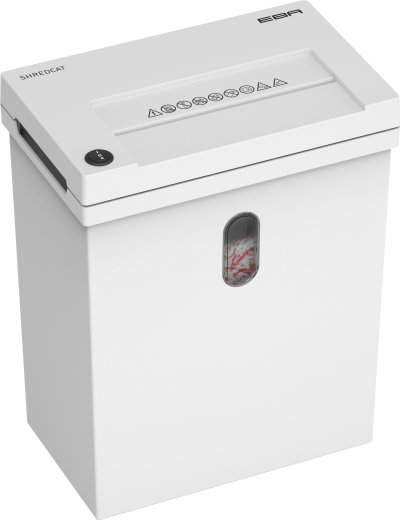 Skartovací válce z tvrzené oceli jsou odolné proti kancelářským sponkám ze sešívačky, což zaručuje dlouhou životnost a spolehlivost. Moderní design tohoto stroje se snoubí s praktickou funkčností, kdy jsou po stranách skartovací hlavy a koše umístěny výřezy, které usnadňují uchopení skartovací hlavy a jednoduché vyprázdnění koše. Tento skartovač je ideální volbou pro efektivní a pohodlné skartování.