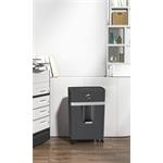 Veškerý odpad padá do sběrného koše o objemu 20 l. Obsah nádoby vidíte skrze průhledné okénko. Vždy včas víte, že se koš naplní. Jelikož je výsuvný, snadno jeho obsah vyprázdníte. Skartovač je vybavený kolečky s brzdou. Jednoduše ho přemístíte z místnosti do místnosti.