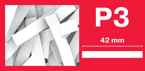 Křížový řez na úrovni zabezpečení P3 řeže papír na části o velikosti 5x42 mm