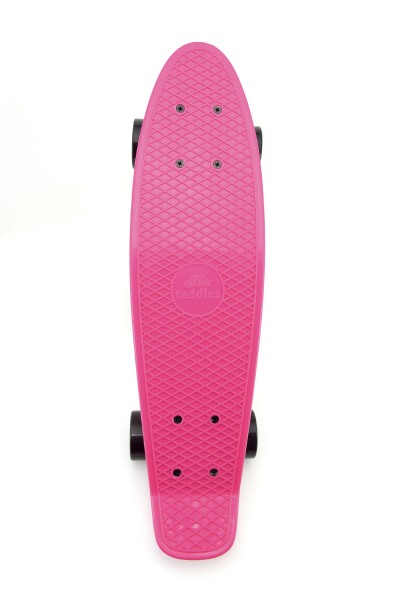 Dětský skateboard - pennyboard pro začínající skateboardisty. Velikost 60 cm. Nosnost 90 kg, kovové osy, růžová deska, černá kola. Vhodné od 8 let.