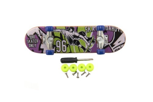 Finger skateboard neboli prstový skateboard má vyměnitelná kolečka. Je ideální svou mini velikostí, lze vzít kamkoli a nikde se nebudete nudit! Rozměr skateboardu: 9 cm Rozměr karty: 12,5 x 17 x 3 cm Vhodné pro děti od 3 let