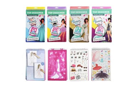 Skicář pro malé návrhářky. Skicář má kroužkovou vazbu a obsahuje 2 mazací strany pro stíratelný fix, 4 archy se šablonami a 30 archů se základní postavou určenou k domalování. Rozměry 25x14x0,5 cm. Více druhů - dodáváme dle skladové dostupnosti. Věk 3+