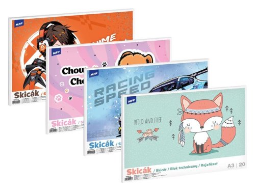 POUŽITÍ: <br> k malování jak tužkou, pastelkami, uhlem, vodovými i temperovými barvami <br> <br> Titulní strana je opatřená 4 motivy (fotbal, smajlíci, kočka, jednorožec) <br> <br> Formát: A3 <br> Gramáž: 190 g <br> Počet listů: 20 listů