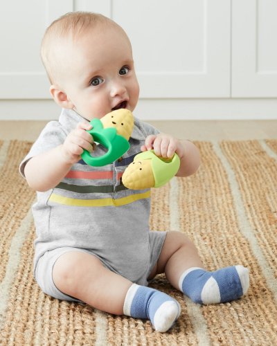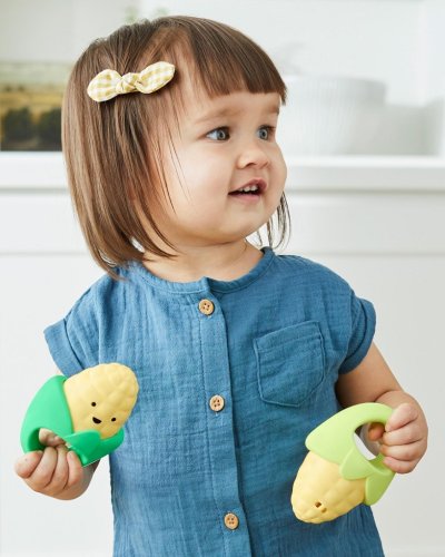 Vaše děťátko si zamiluje tyto úžasné chrastítka ve tvaru kukuřice, ať už jako zvukové hračky nebo kousátka. Chrastítko má snadno uchopitelný tvar a každá z nich vydává jiný zvuk pro ještě větší zábavu.