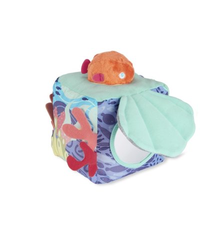 Ponořte se do nekonečné zábavy! Naše měkká kostka aktivit inspirovaná mořem, která je plná více měkkých textur, zvuků šustění a dalších věcí, které může dítě prozkoumat, podporuje vícesmyslové zkoumání během hry. Obsahuje rybí chrastítko, pomačkanou skořápku se skrytým dětským zrcátkem, hračku na kousání ryb a mnoho dalších oceánských pokladů, které můžete objevit.