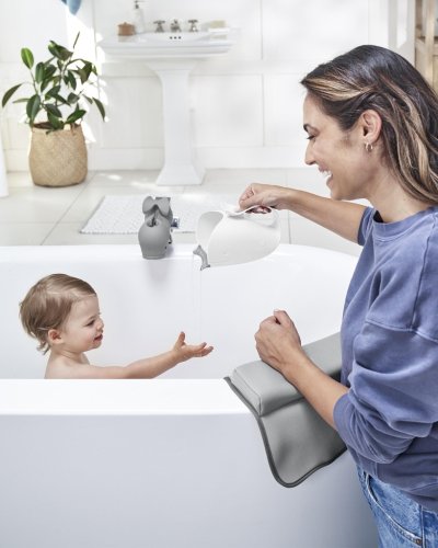 Pohár Moby přináší inovaci při oplachování. Díky vnitřním přihrádkám tok vody je ustálený, čímž se zajistí rychlé oplachování. Měkká guma přirozeně kopíruje tvar čela, čímž se zabrání vniknutí vody do očí. Lehká rukojeť umožňuje držet sklenici v jedné ruce zatímco ve druhé držíte miminko.