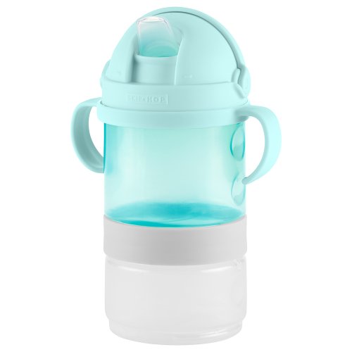 Tato praktická 5dílná sada na jídlo a pití pro miminka a batolata má specifický design pro stohování, čímž se přizpůsobí vašim měnícím se potřebám. Díky této sadě mohou vaše dětičky popíjet a mlsat doma i na cestách. Díky dvěma kompatibilně vyměnitelným otočným uzávěrům/víčkům, dvěma nádobám a volitelné rukojeti vám tato sada umožňuje používat jednotlivé komponenty samostatně nebo je naskládat dohromady. Naplňte je cereáliemi, sušenkami, ovocem, vodou, džusem a dalšími oblíbenými jídly vašeho drobečka a můžete jít do světa.
