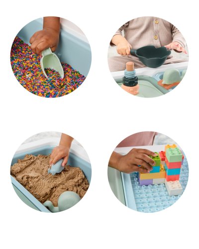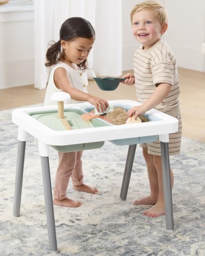 Skip Hop 24-dílná sada smyslového stolku, vyvinutá ve spolupráci s odborníkem na smyslové hry, nabízí dětem neomezené možnosti objevování, učení, tvoření a hraní. Časné objevování, navržené tak, aby rostlo s vaším děťátkem, začíná hraním na podlaze a přiloženými nástroji (dřevěné kleště a válečky, naběračky, lopatka a další) – dají se použít mnoha způsoby. Když vaše dítě vyroste, přidejte k němu nohy stolu a experimentujte s výplněmi, jako je písek, suché těstoviny, voda, hlína a další nalezené předměty. Třídit, vyřezávat, nabírat, nalévat a ještě více – napněte svou představivost a vytvořte praktickou zemi pro smyslové hry a objevování. Potřebujete nápady?