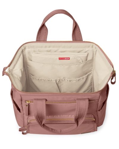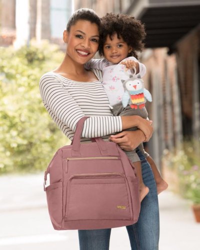 Taška nabízí velkou hlavní přihrádku se zabezpečením na zip a množství kapes pro věci jako je telefon, láhev na vodu a klíče. Díky nastavitelným popruhům lze tašku použít jako batoh, a to maminkám umožní mít volné ruce, což je k nezaplacení.